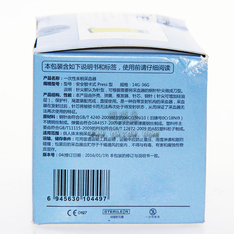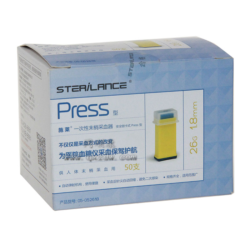 施莱一次性末梢采血器(安全锁卡式Press型 26G 1.8mm)