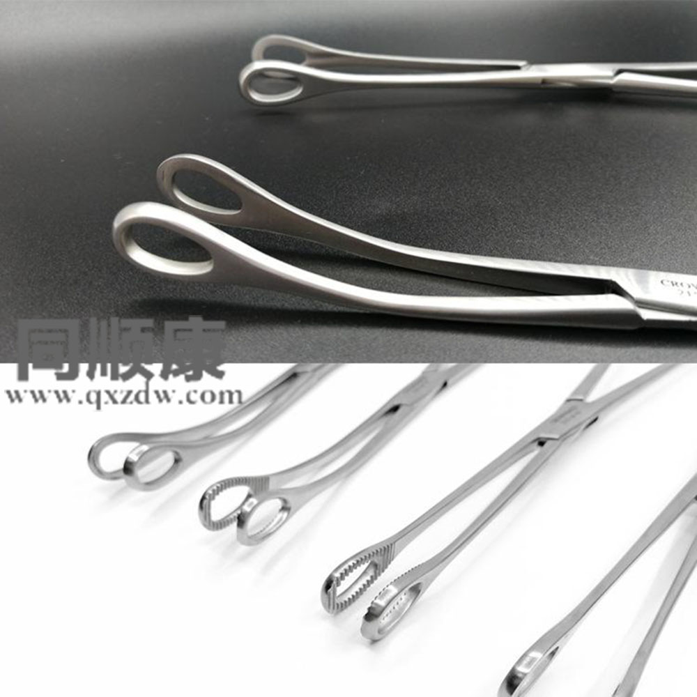 上海金钟 不锈钢卵圆钳/海绵钳 (直/弯 有齿/无齿 8mm/10mm/12mm)