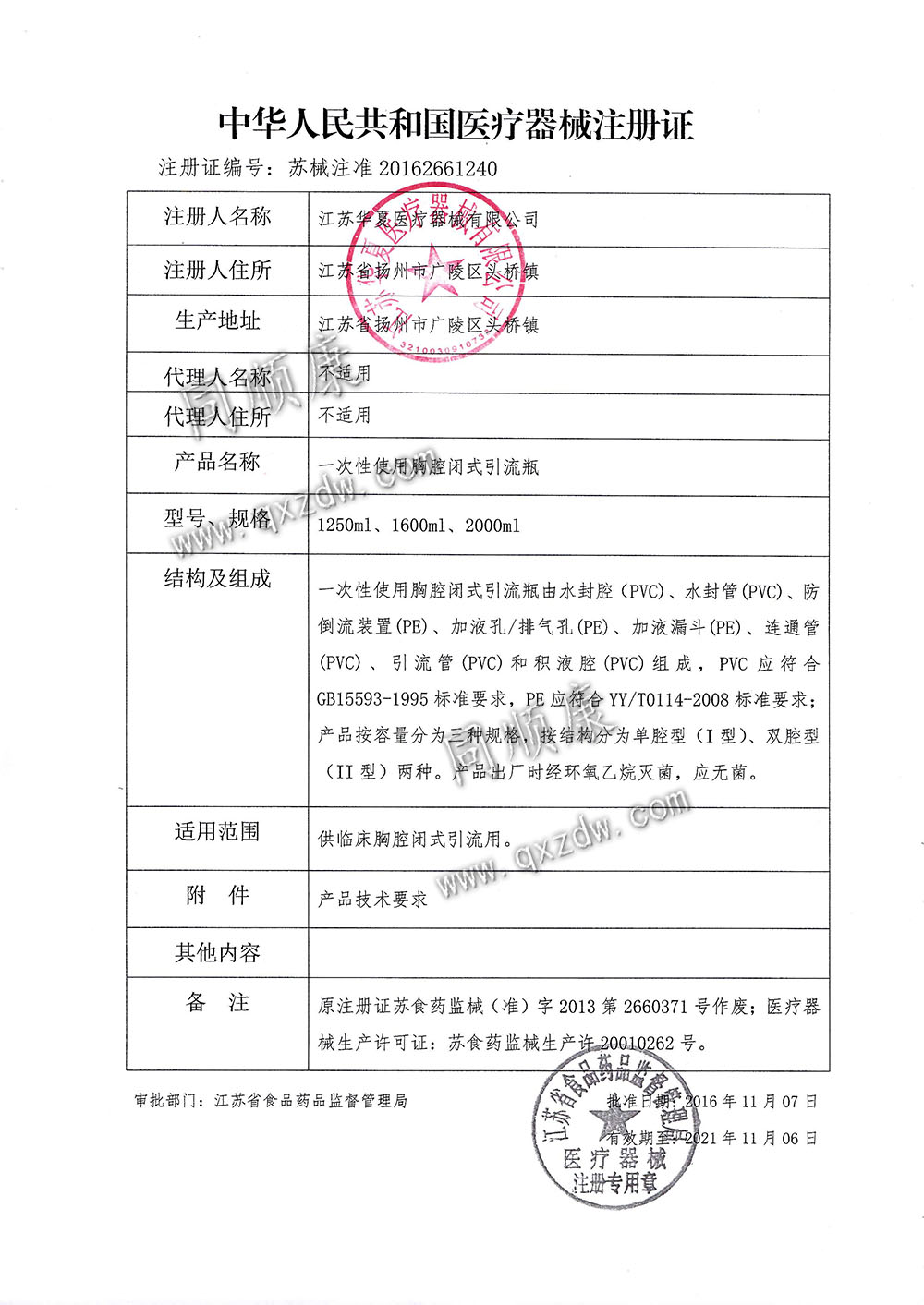 一次性使用胸腔闭式引流瓶 (单腔型(I型)1600ml)