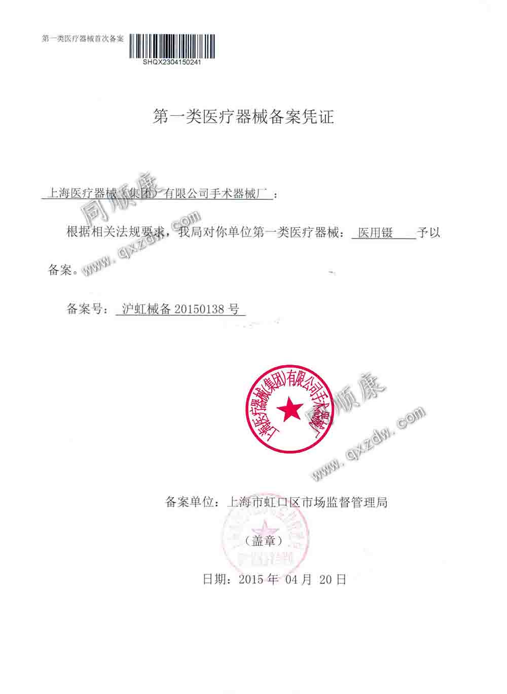 注册编号:泸虹械备20150138号