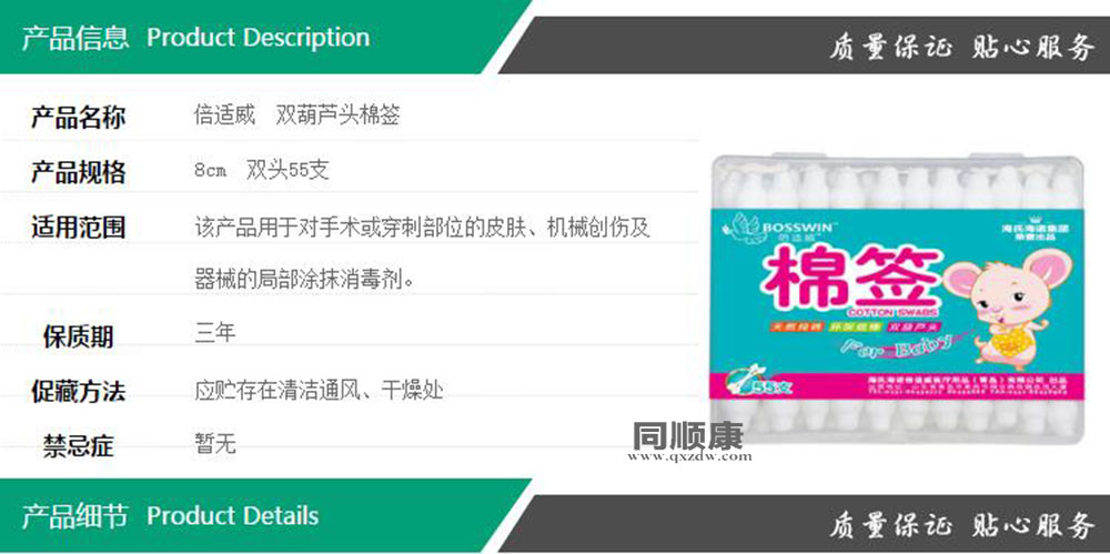 倍适威/海诺 棉签(8cm婴儿 葫芦头/螺旋细头 双头)